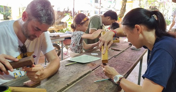 Không chỉ tham quan, nhiều du khách quốc tế hào hứng trực tiếp cầm đục, tự tay tạo nên những sản phẩm gỗ nhỏ xinh tại làng mộc Kim Bồng, phường Hội An, TP. Đà Nẵng.