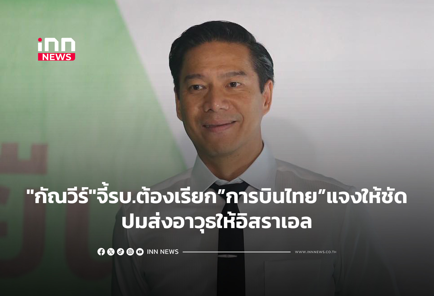 “กัณวีร์”จี้รัฐบาลไทยต้องเรียกการบินไทยชี้แจงข้อกล่าวหาส่งอาวุธให้อิสราเอล ย้ำต้องชี้แจงให้ชัด ไม่ให้ไทยถูกลากเข้าสู่สงคราม