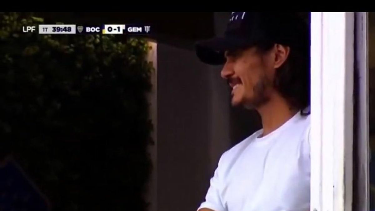 Cavani siguió el empate desde la platea preferencial y una imagen captada por la TV volvió a poner el foco en su problema físico.