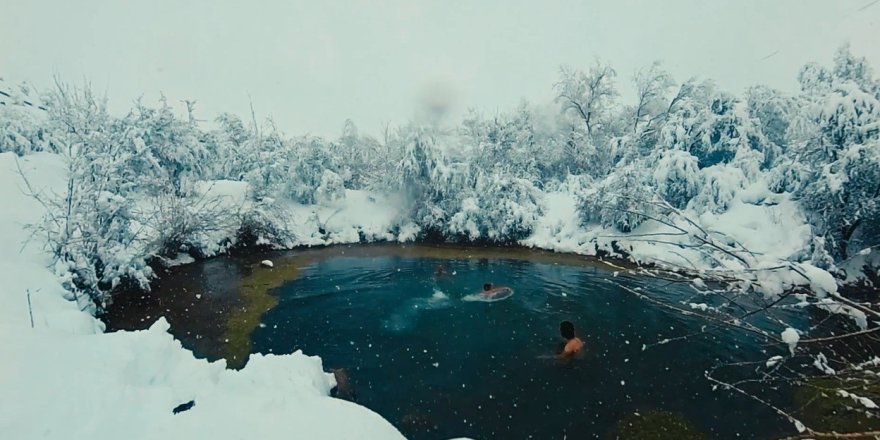 Buz Gibi Gölette Cesur Deneyim.. Üç Arkadaş Karla Kaplı Suda Yüzdü!