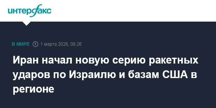 Иран утром в воскресенье предпринял новую волну ракетных ударов по Израилю и американским военным базам в ближневосточном регионе, сообщает Bloomberg со ссылкой на иранские СМИ."Агентство Tasnim сообщило, что Иран объявил о новой волне атак на Израиль и базы США в регионе", - пишет Bloomberg.