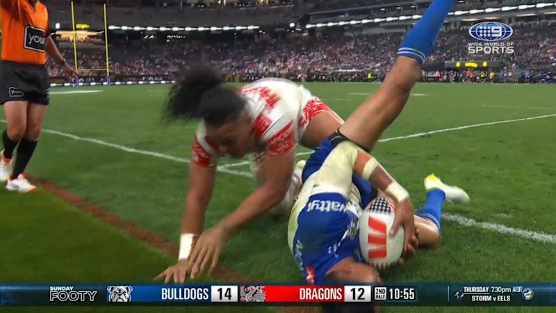 Christian Tuipulotu pulls of a monstrous tackle on Marcelo Montoya, bundling his opposing winger into touch.