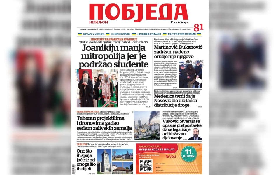 Naslovnica “Pobjede” 1. mart 2026.