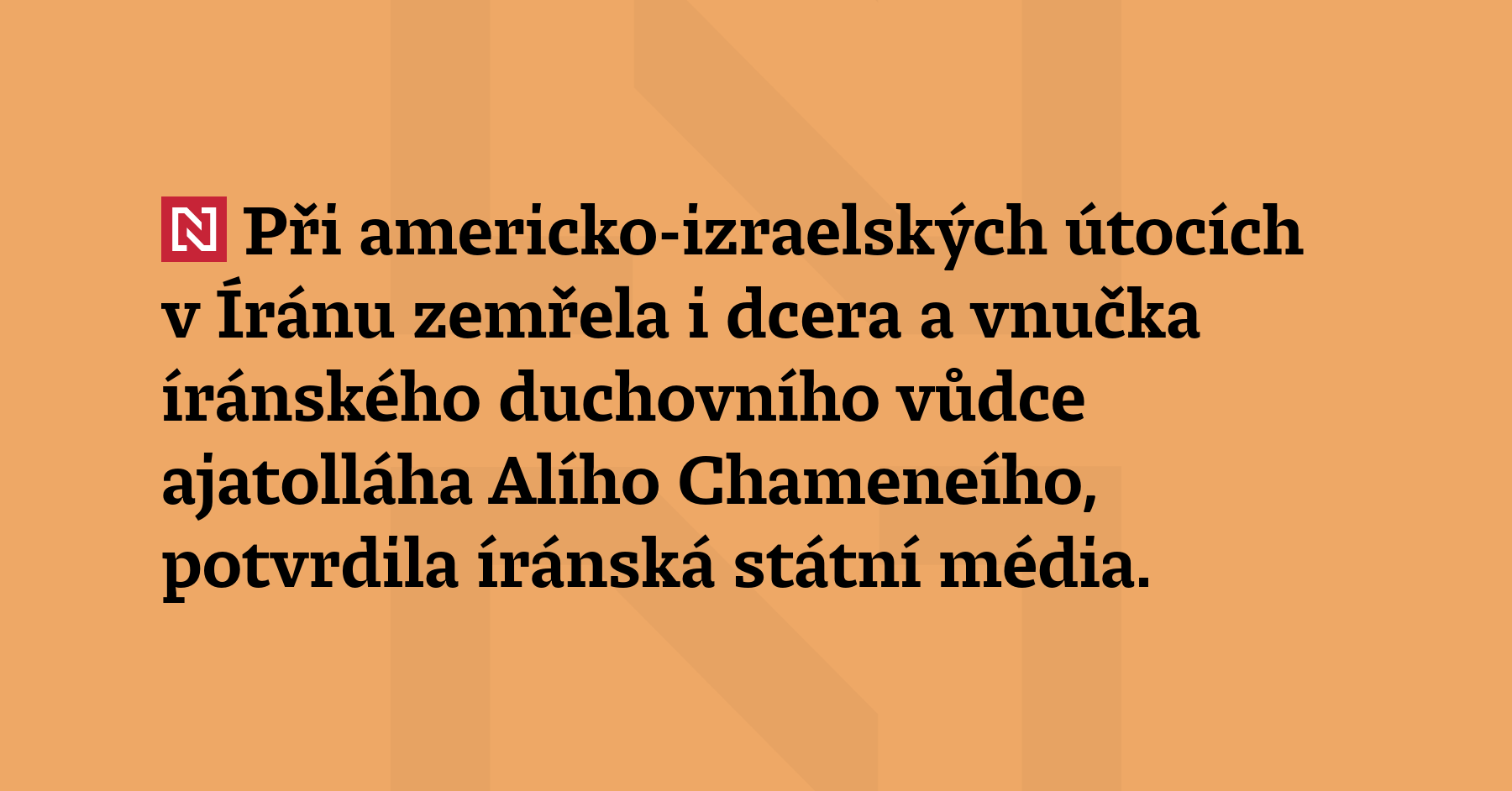Při americko-izraelských útocích v Íránu zemřela i dcera a vnučka íránského duchovního vůdce ajatolláha Alího Chameneího, potvrdila íránská státní média. (Sky News)