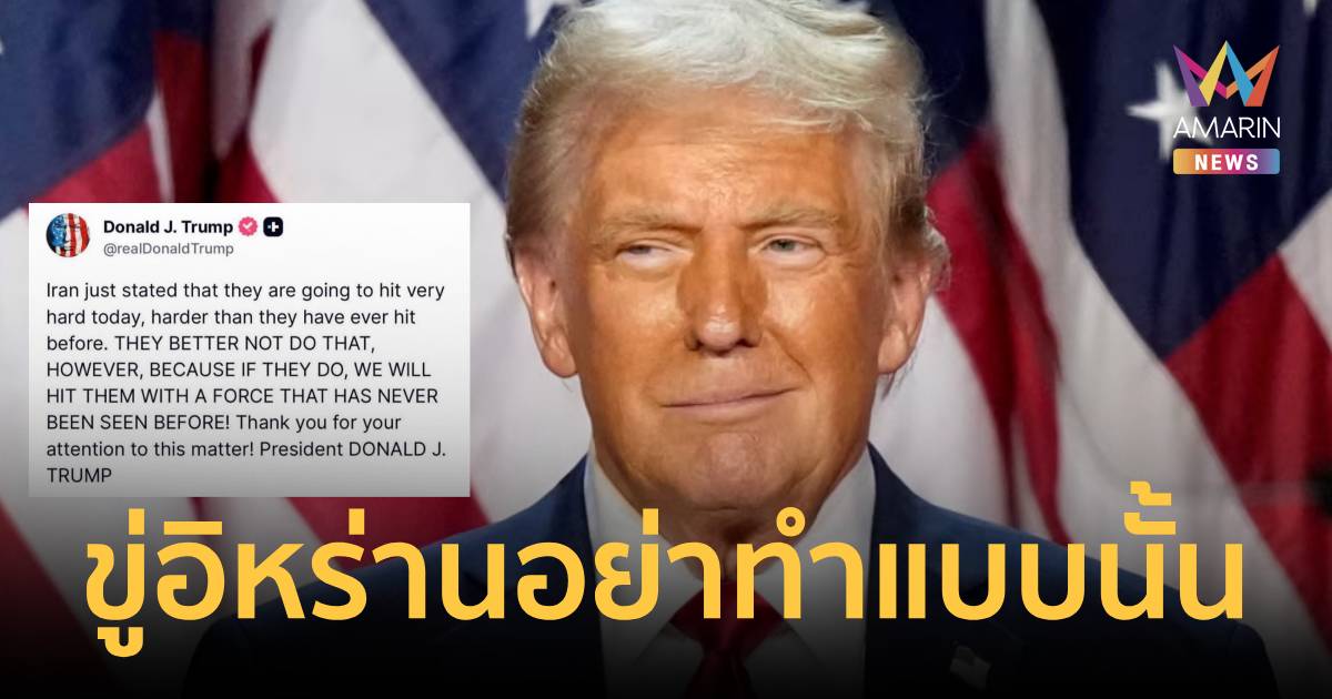 "อย่าทำแบบนั้น!" ทรัมป์โพสต์ขู่อิหร่าน ลั่นจะโต้กลับด้วยกำลังรุนแรง อย่างที่ไม่เคยเห็นมาก่อน