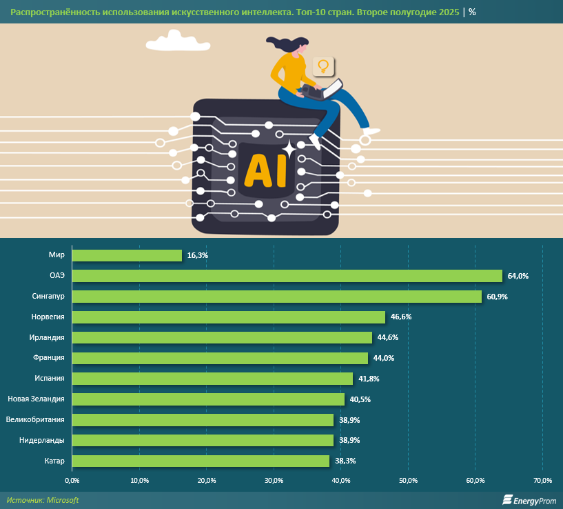 В 2025 году мир преодолел важный психологический и экономический барьер в развитии технологий. Генеративный искусственный интеллект (GenAI) перестал быть «игрушкой» для энтузиастов и стал базовым инструментом продуктивности. Однако этот год также обнажил проблему «цифрового разрыва»: пока одни страны интегрируют нейросети в государственное управление, другие рискуют остаться на обочине технологического прогресса. По данным отчёта Microsoft о […] Сообщение Каждый шестой работник в мире уже использует ИИ. Узбекистан пока отстаёт появились сначала на Новости Узбекистана сегодня: nuz.uz .