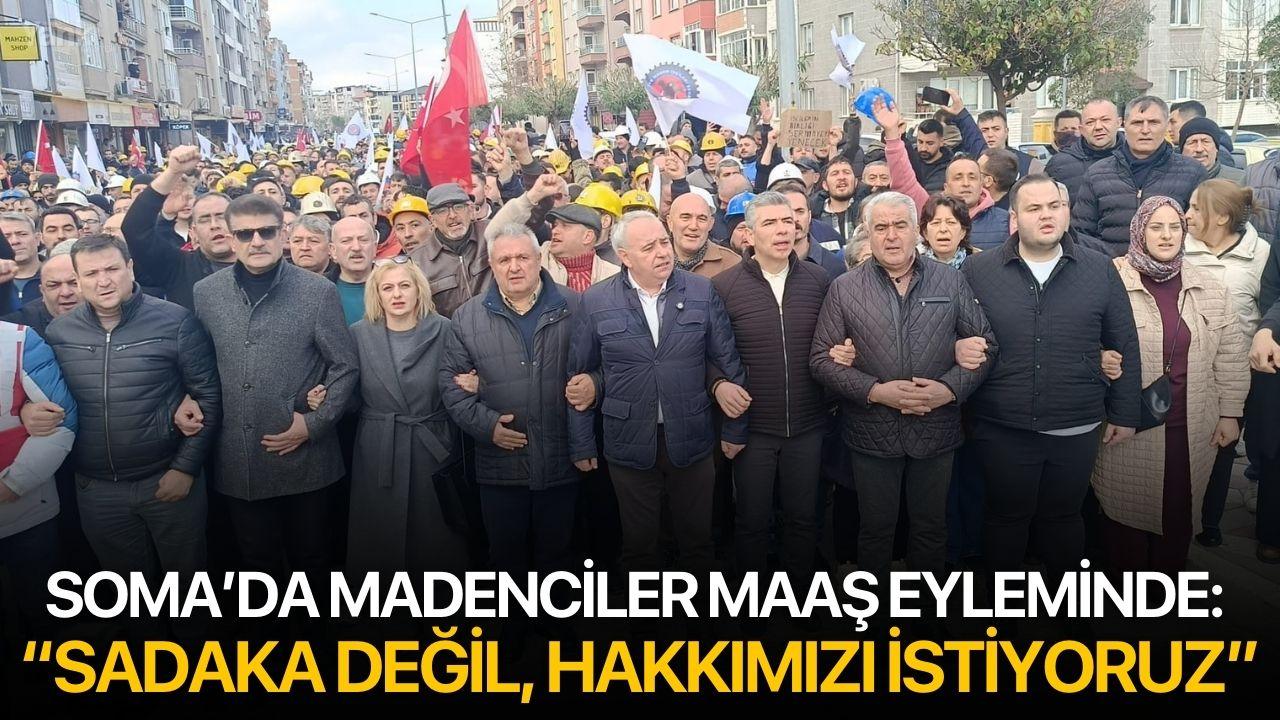 Manisa'nın Soma ilçesinde yaklaşık 8 aydan bu yana maaşlarını aksamalı olarak alan ve zam farklarını alamayan yeraltı maden işçileri Türkiye Maden İşçileri Sendikası öncülüğünde işyerinde başlattıkları eylemi ilçe merkezine taşıdı