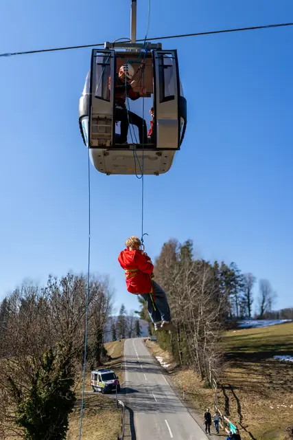 Großübung am Grazer Hausberg, dem Schöckl: 104 Einsatzkräfte trainierten den Ernstfall in luftiger Höhe. ST. RADEGUND. Spektakuläre Szenen spielten sich am Samstag rund um die Schöckl-Seilbahn in St. Radegund ab: Gondeln standen still, Menschen warteten in schwindelerregender Höhe auf ihre Rettung – zum Glück nur im Rahmen einer großangelegten Übung. Die Seilbahn befindet sich noch bis 21. März in Revision. Das nutzten die Einsatzorganisationen für ein realistisches Szenario: Nach zwei Jahren...