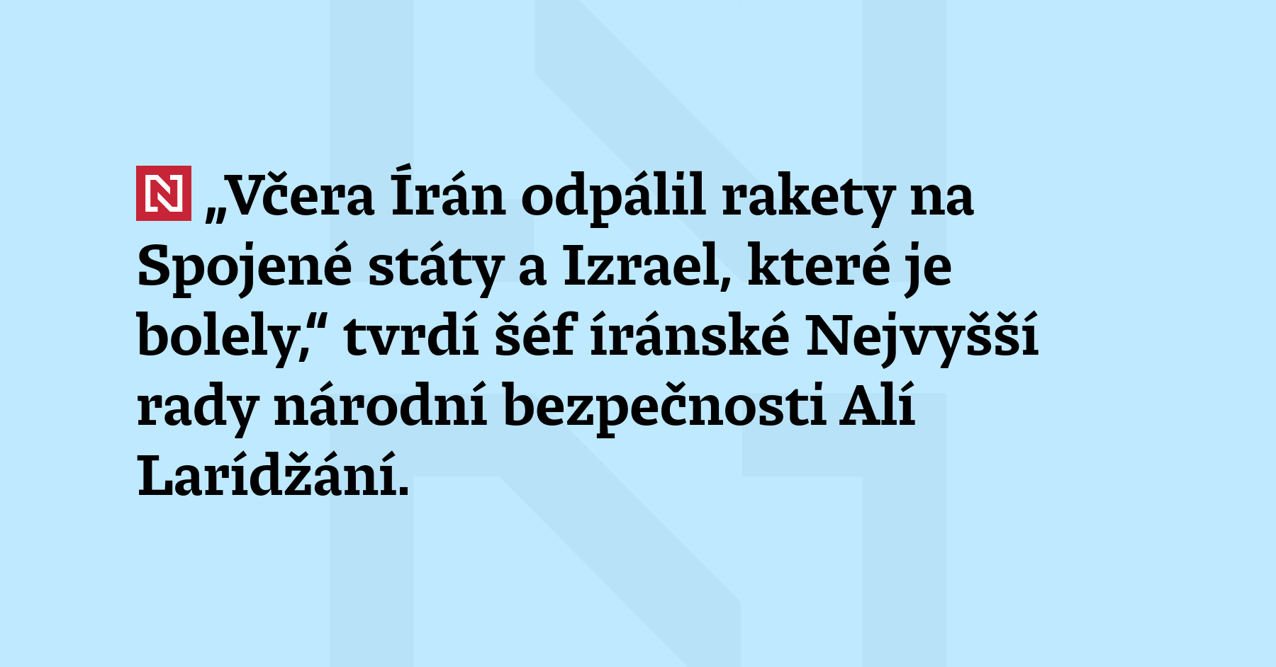 „Včera Írán odpálil rakety na Spojené státy a Izrael, které je bolely,“ tvrdí šéf íránské Nejvyšší rady národní bezpečnosti Alí Larídžání. „Dnes je zasáhneme silou, kterou ještě nikdy nezažili,“ napsal v příspěvku na síti X.