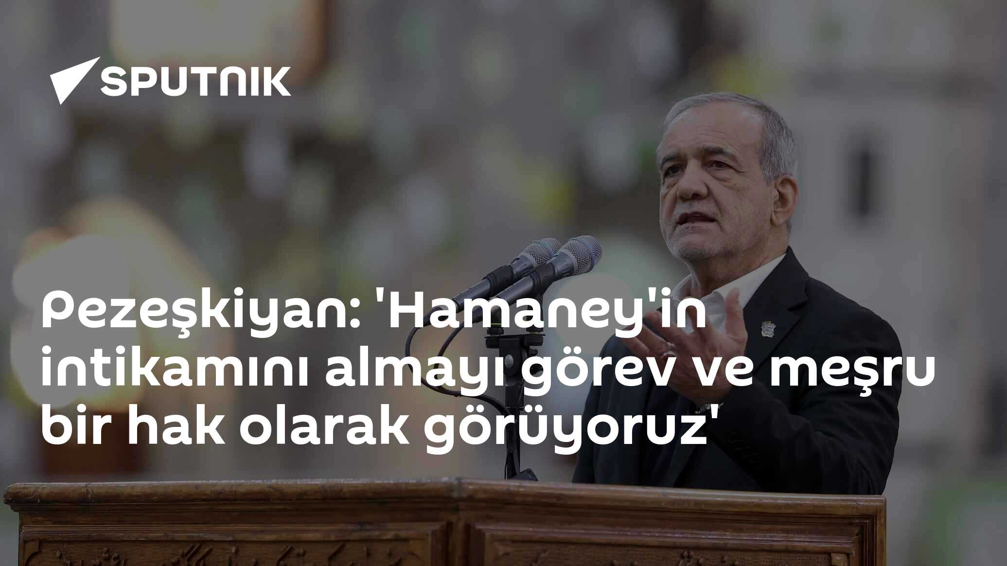 İran Cumhurbaşkanı Mesud Pezeşkiyan, İran Ruhani Lideri Ayetullah Ali Hamaney'e yönelik suikastı "başta Şiiler olmak üzere dünyanın her yerindeki Müslümanlara karşı açık bir savaş" olarak nitelendirerek, İran'ın "intikamı görev ve meşru bir hak" olarak gördüğünü söyledi.