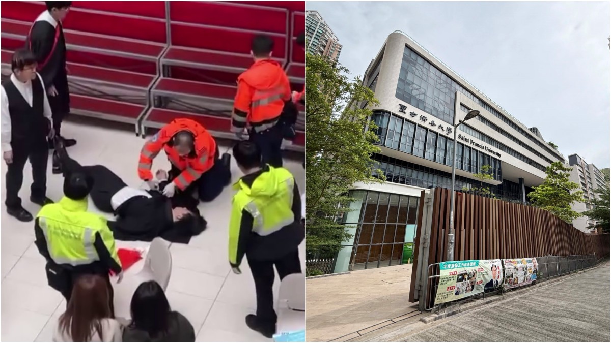 將軍澳翠嶺路聖方濟各大學2樓禮堂,今日(3月1日)下午1時許一名24歲姓何男生,參與畢業禮期間昏迷。據悉他當時身上有酒氣,附近剩半樽啤酒。 救護員接報趕至時,男子仍人事不省,遂剪開畢業袍為他急救,其後將他送將軍澳醫院救治,男生母親亦趕至醫院了解。經檢查,男生未被發現受傷,警方將案件列「有人暈倒及醉酒人士」處理。