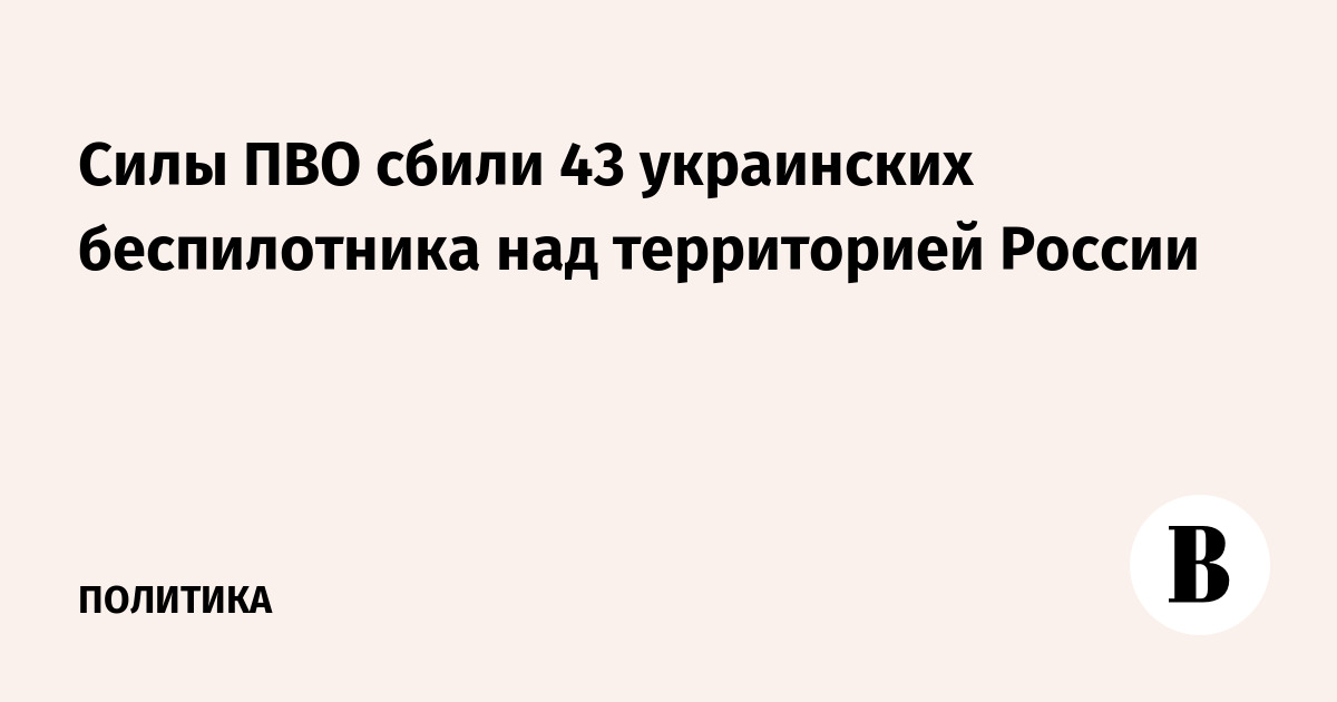 Силы ПВО сбили 43 украинских беспилотника над территорией России