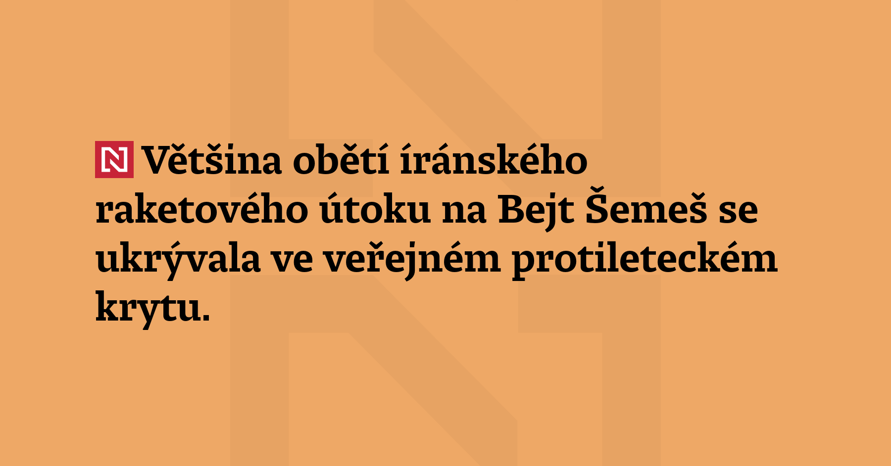 Většina obětí íránského raketového útoku na Bejt Šemeš se ukrývala ve veřejném protileteckém krytu. „Šlo pravděpodobně o přímý zásah,” sdělil představitel policie k úderu, který si vyžádal nejméně devět mrtvých a více než dvě desítky zraněných. (ČT24)