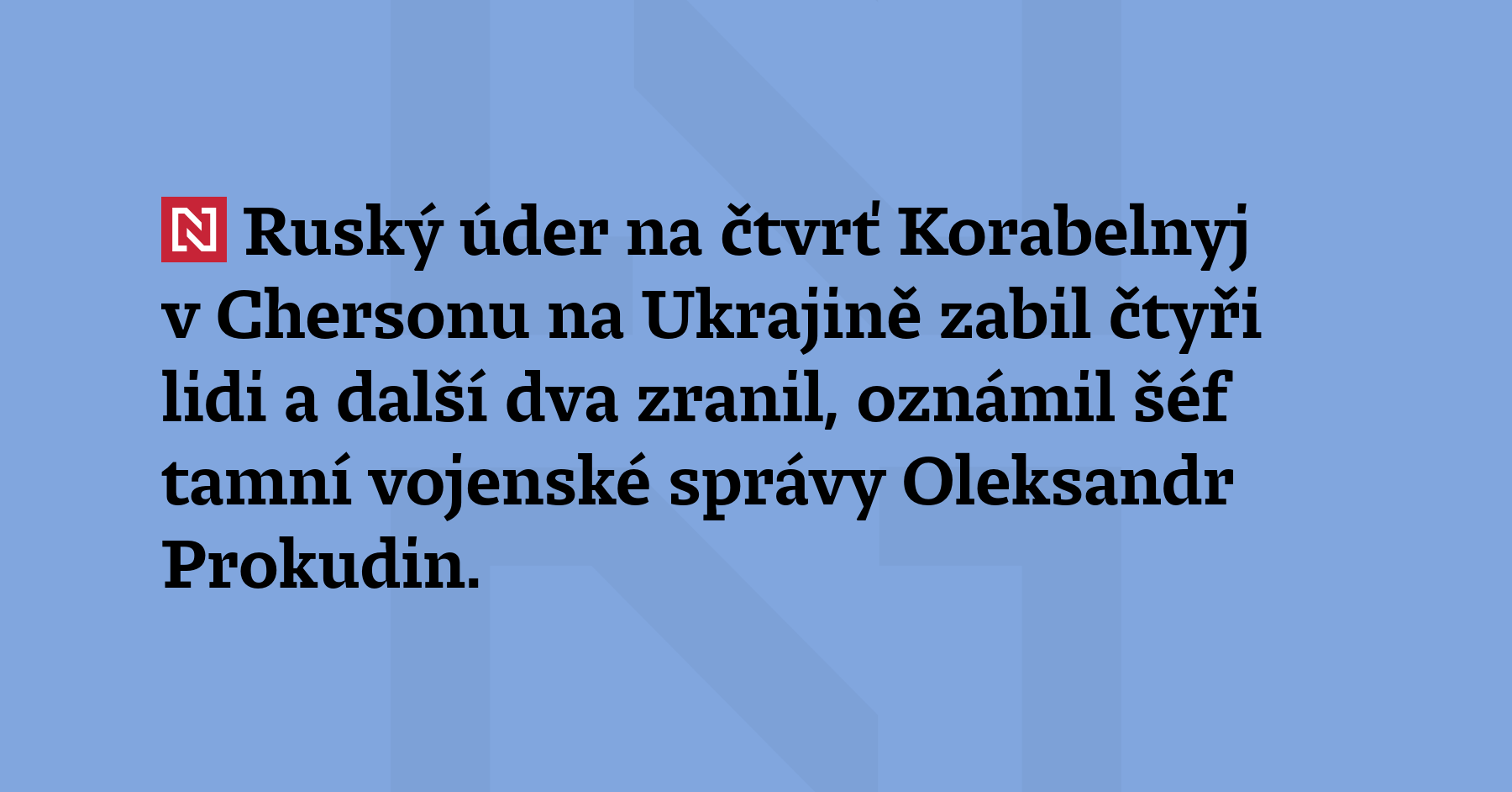 Ruský úder na čtvrť Korabelnyj v Chersonu na Ukrajině zabil čtyři lidi a další dva zranil, oznámil šéf tamní vojenské správy Oleksandr Prokudin. (Ukrinform)