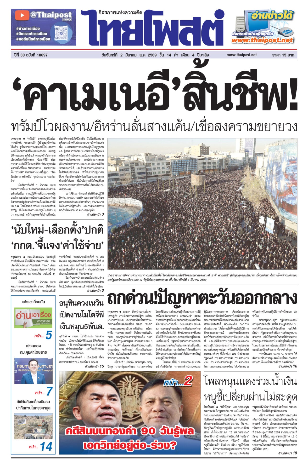 หนังสือพิมพ์ ฉบับวันที่ 2 มีนาคม 2569ข่าวหน้าหนึ่ […] The post ฉบับวันที่ 2 มีนาคม 2569 appeared first on .