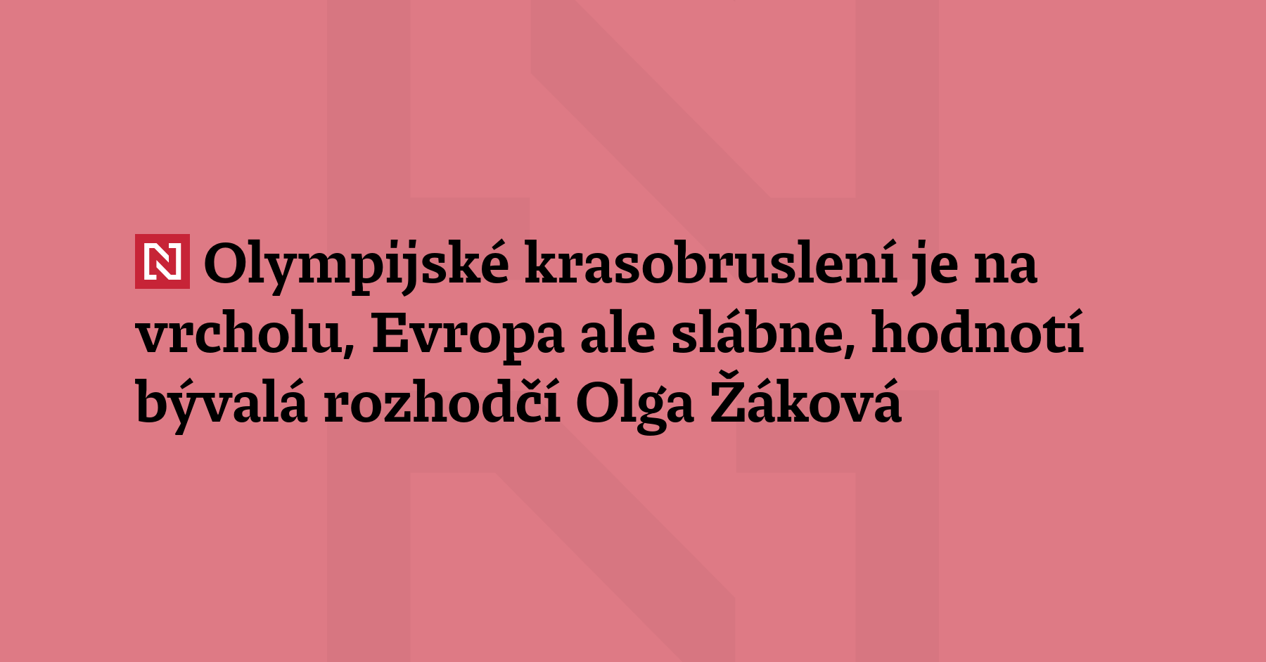 Bývalá krasobruslařka, mezinárodní rozhodčí a televizní komentátorka Olga Žáková hodnotí mimořádnou úroveň krasobruslení na letošních olympijských hrách i slábnoucí pozici Evropy v tomto sportu. Mluví o nadějích českých tanečních párů, o proměně sportu i vlastních zážitcích z her v Lillehammeru a Naganu – a vysvětluje, proč je zásadní rozdíl mezi ježděním na hudbu a do hudby.
