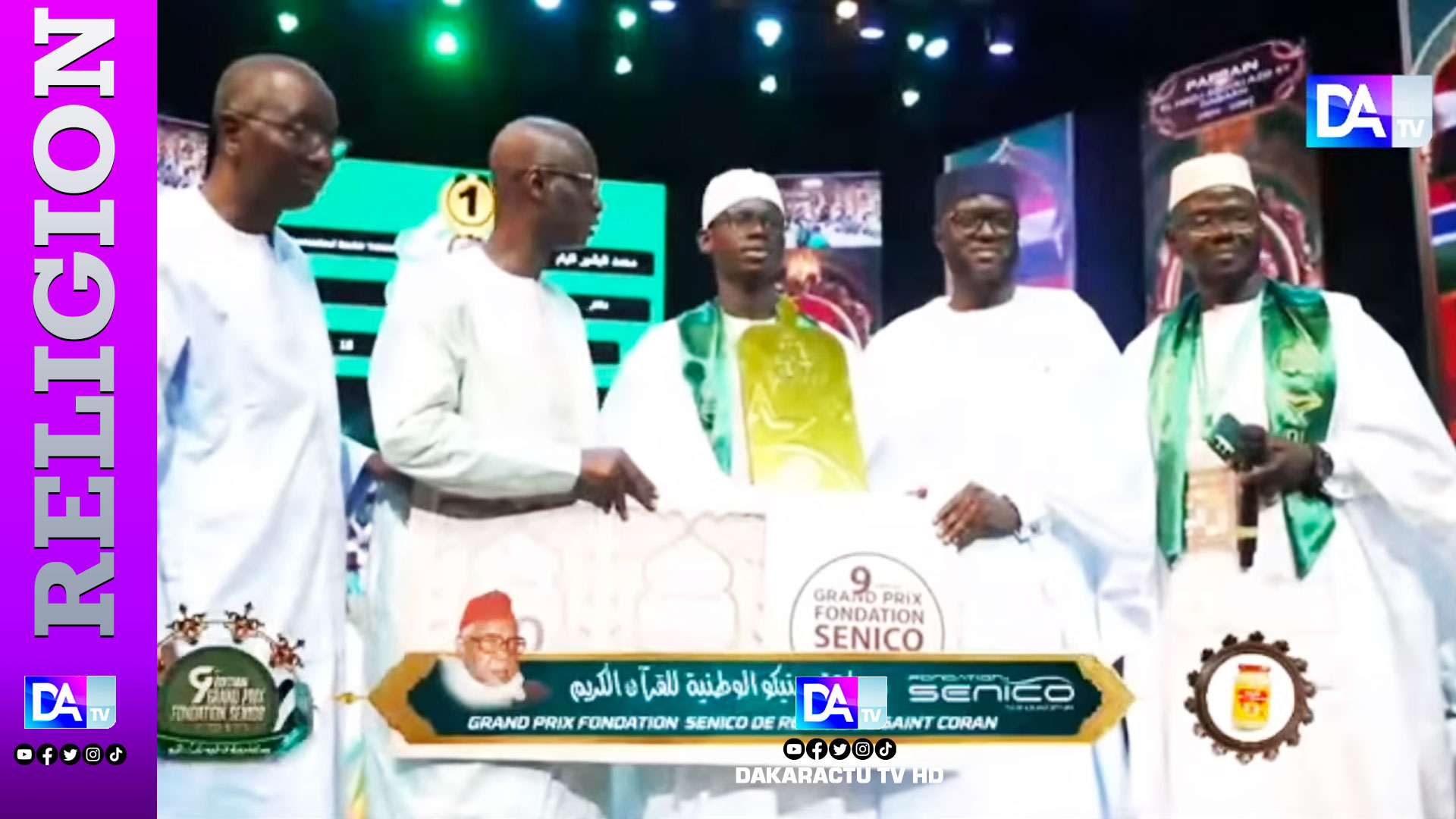 La 9eme édition du Grand Concours de Récital du Coran Prix Senico a tenu toutes ses promesses dans une atmosphère de ferveur spirituelle et d’excellence. La compétition a consacré Mouhamadoul Bachir Thiam (Dakar), sacré grand lauréat avec l’impressionnant score de 98/100. Il repart avec un trophée en argent, un billet de pèlerinage à La Mecque, ainsi qu’une enveloppe supplémentaire de 3 millions FCFA offerte par le Président de l’Assemblée nationale et 1 million FCFA par Serigne Souleye Ndiaye. La deuxième place revient à Cheikhouna Mbaye (Touba) avec 97,33 points, récompensé par 20 millions FCFA, un trophée en argent et un billet de pèlerinage. Le podium est complété par Abdoul Ahad Wagnane (Diourbel), crédité de 96 points, qui empoche 15 millions FCFA. Derrière ce trio de tête, la compétition a révélé un niveau particulièrement relevé. La quatrième place (95,67 points) est occupée par Serigne Mor Mbacke (Diourbel), qui reçoit 10 millions FCFA, suivi de Saliou Ndiaye (Diourbel), cinquième avec 95,60 points et 8 millions FCFA. Ousmane Ramadan Wade (Dakar) décroche la sixième place (95,17 points) et 6 millions FCFA, tandis que Mame Baye Mbaye (Kaolack) se classe septième avec 94,83 points et 5 millions FCFA. Les deux huitièmes ex æquo, Mouhamed Dia (Diourbel) et Baye Modou Sarr (Dakar), totalisent chacun 94,67 points et repartent avec 3,5 millions FCFA. La dixième place est revenue à Ismaila Senghor (Dakar) avec 94,17 points et une récompense de 2 millions FCFA. Les candidats classés de la 11eme à la 50eme place bénéficient chacun d’une prime de participation de 500 000 FCFA. Au delà des distinctions financières, cette édition 2024 du Prix Senico a été marquée par un esprit de fraternité et de respect des valeurs islamiques. Les organisateurs ont salué la discipline et le haut niveau des compétiteurs venus de plusieurs régions du Sénégal, notamment Dakar, Diourbel, Kaolack et Touba. La cérémonie s’est clôturée par des prières pour la paix, la prospérité et la cohésion nationale, rappelant que ce concours demeure avant tout une célébration du Saint Coran et un moment d’élévation spirituelle collective. www.dakaractu.com