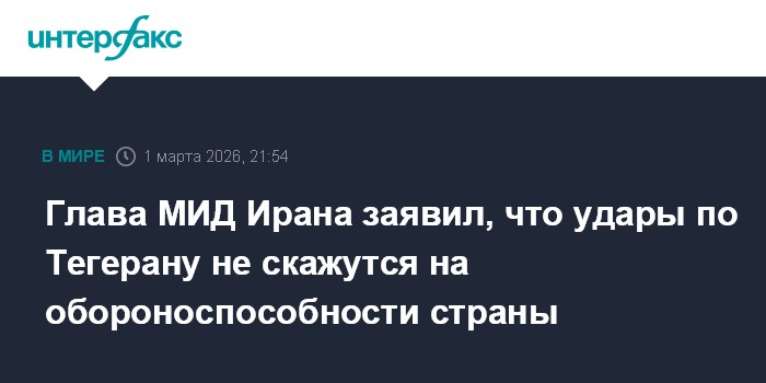 Глава МИД Ирана заявил, что удары по Тегерану не скажутся на обороноспособности страны