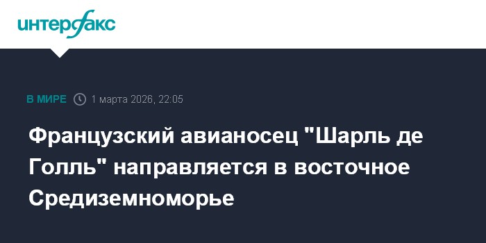 Французский авианосец "Шарль де Голль" отправлен в восточную часть Средиземноморья на фоне роста напряженности на Ближнем Востоке, сообщает в воскресенье телеканал БФМ-ТВ со ссылкой на источники.