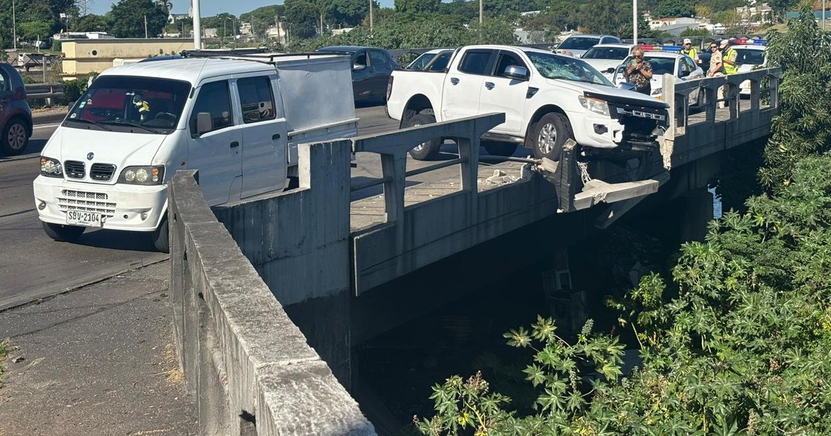 Conductor perdió el control y chocó contra el puente del arroyo Pantanoso: el vehículo quedó suspendido
