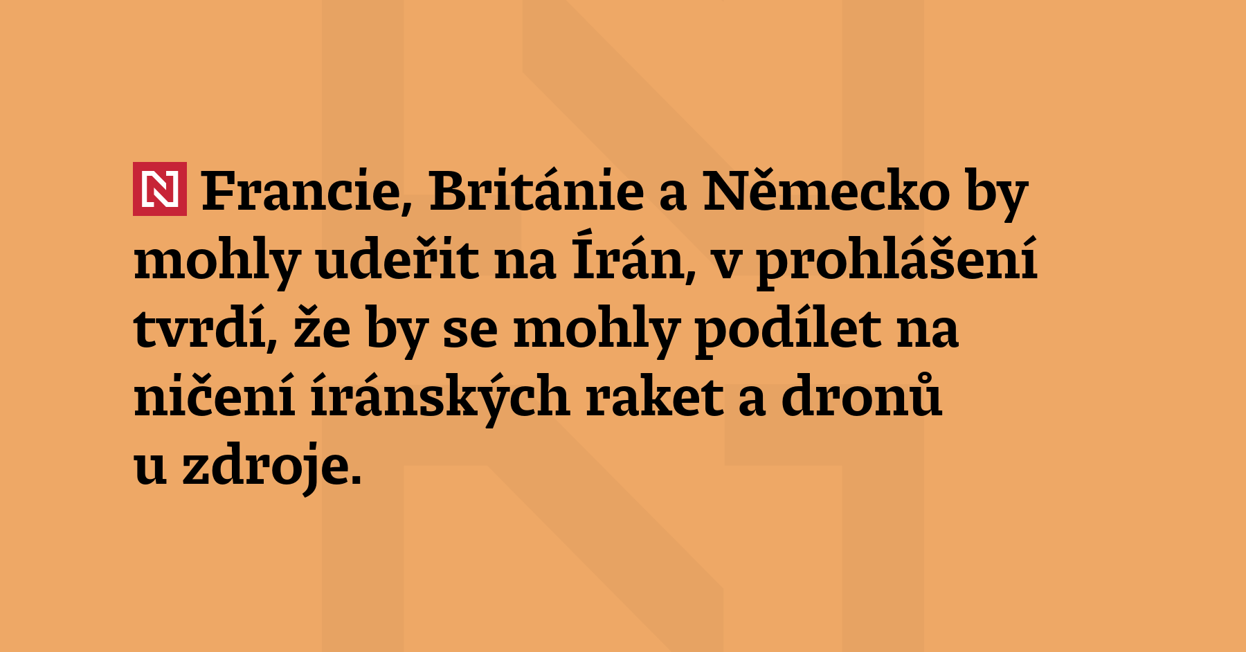 Francie, Británie a Německo by mohly udeřit na Írán, v prohlášení tvrdí, že by se mohly podílet na ničení íránských raket a dronů u zdroje. (ČTK)