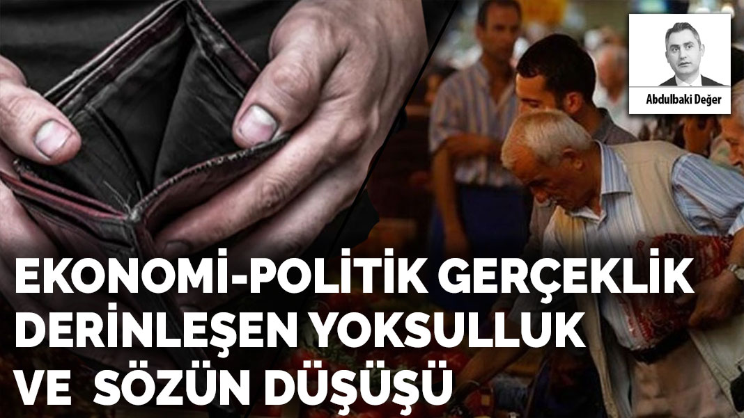 Türkiye’de ekonomideki görünüm, asgari ücret rakamı, açlık sınırı ve emekli maaşının asgari ücretin ve açlık sınırının altında olduğunu yazan Abdulbaki Değer, hayatla bağı kopan ekonomi-politiğin maalesef iktidarın kullanışlı bir aygıtına indirgendiğini bununla birlikte ne dil, ne verilerin herhangi bir rasyonaliteye göndermede bulunamadığını belirtti.