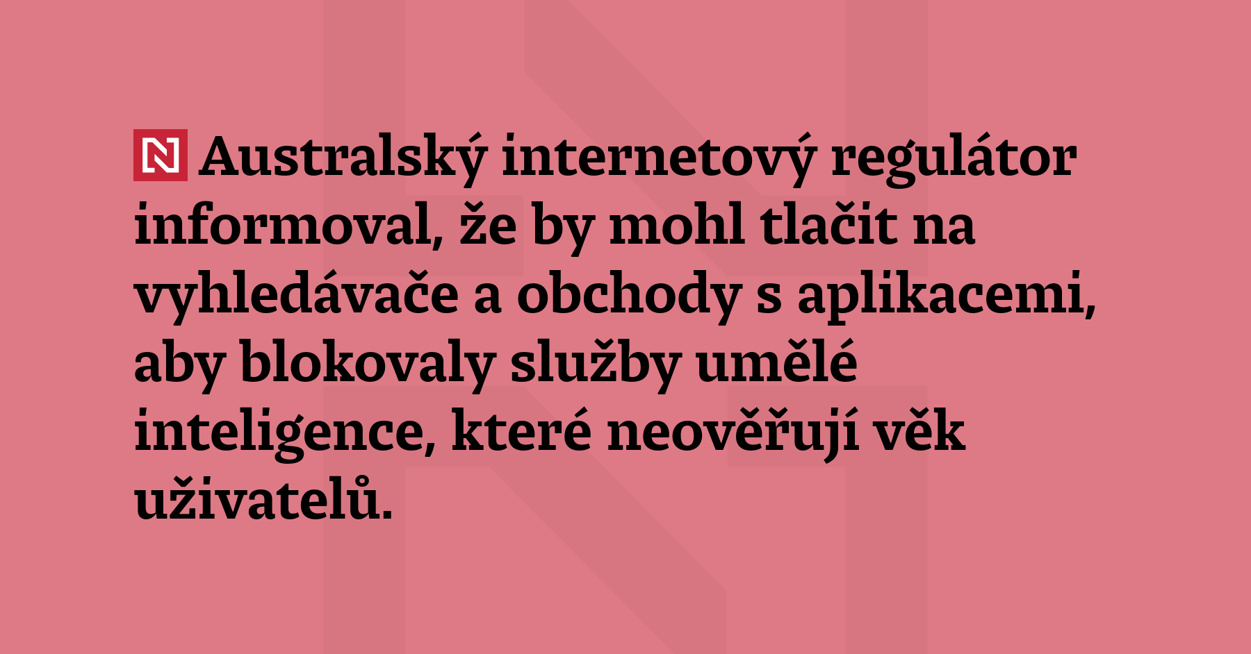Australský internetový regulátor informoval, že by mohl tlačit na vyhledávače a obchody s aplikacemi, aby blokovaly služby umělé inteligence, které neověřují věk uživatelů. (Reuters)