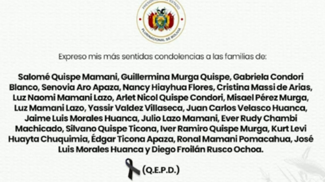 Afirmó que el Estado acompaña el dolor de las familias. The post Presidente expresa condolencias appeared first on Red Bolivisión .