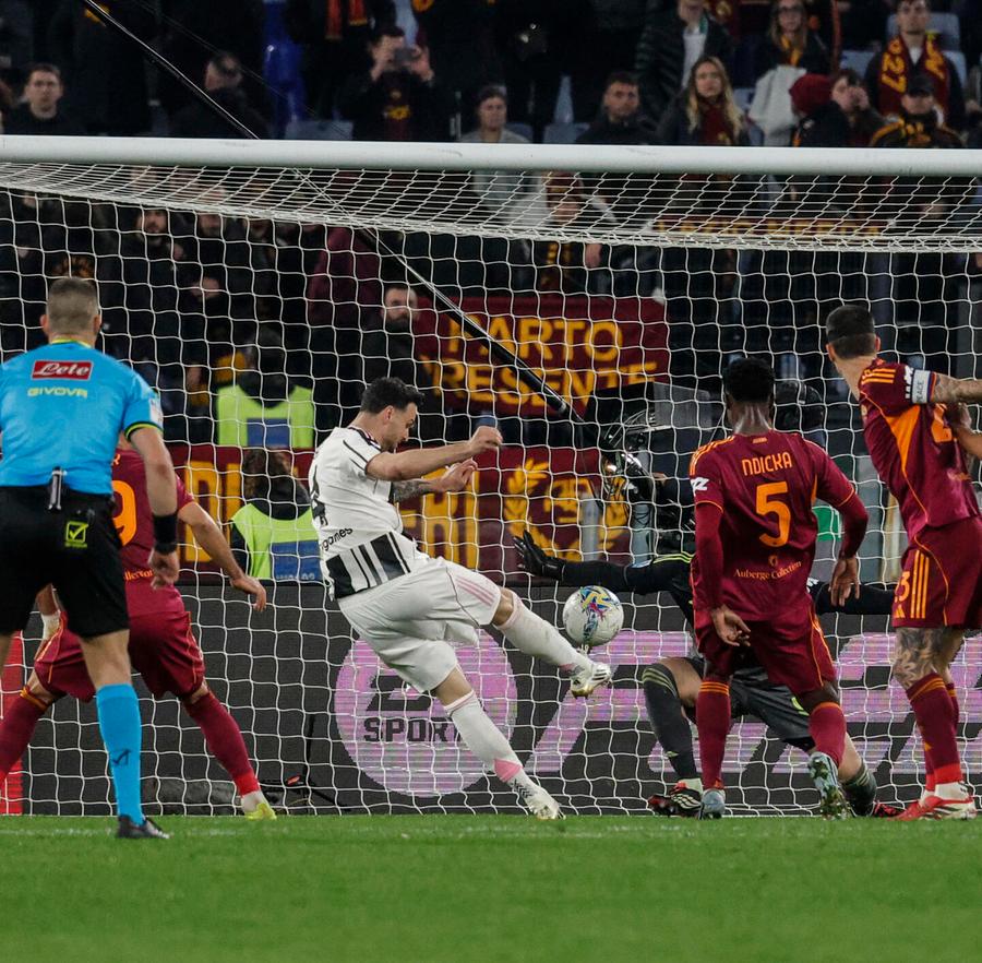 Straordinaria partita all’Olimpico, Roma avanti per 3-1 ma i bianconeri raggiungono il pari nel recupero
