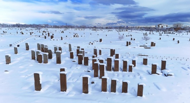 Bitlis'in Ahlat ilçesinde etkili olan kar yağışı sonrası tarihi mekânlar beyaza büründü, ortaya kartpostallık manzaralar çıktı.