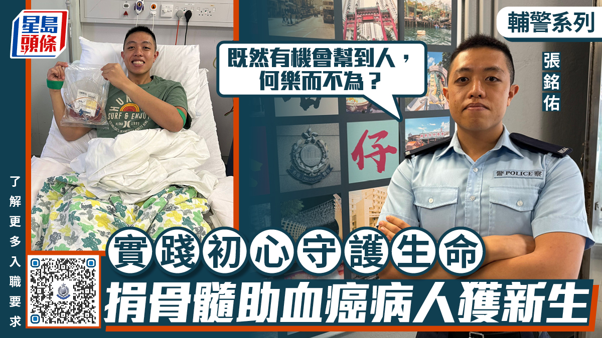 駐守香港仔分區軍裝巡邏小隊的輔警張銘佑,從小決志以自己的力量幫助別人。他於大學時期加入輔警隊,希望利用課餘時間,從事一些能幫助市民,服務社會的工作,同時增值自己。此外,他早年亦登記成為骨髓捐贈者,成功配對一名血癌病人,最終成功挽救受贈者的生命,事件亦感染多名輔警同事加入捐贈行列,希望幫助更多有需要的人。張銘佑感言,輔警身份與捐贈骨髓的經歷和精神相輔相成,均源自同一份「幫助他人、守護生命」的初心。
