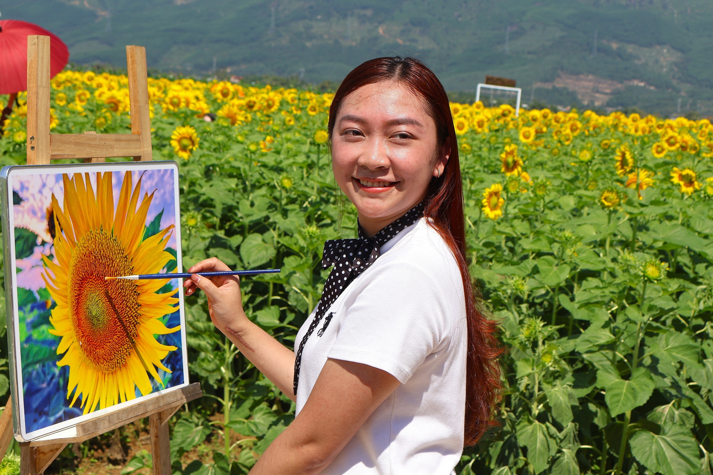 Vườn hoa hướng dương bạt ngàn giữa bãi bồi hút giới trẻ