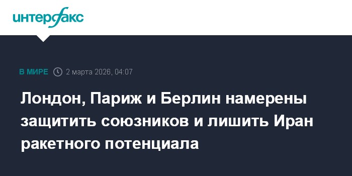 Лидеры Великобритании, Франции и Германии возмущены ударами Ирана по их союзникам на Ближнем Востоке и намерены предпринять "необходимые меры обороны", следует из заявления стран "евротройки", которое опубликовала канцелярия британского премьера Кира Стармера."Мы предпримем шаги для защиты наших интересов и интересов наших союзников в регионе, возможно, путем принятия необходимых и соразмерных мер обороны, чтобы уничтожить способность Ирана запускать ракеты и БПЛА", - говорится в тексте заявления.