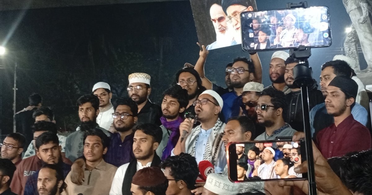 Members of the Dhaka University Central Students' Union (Ducsu) gathered on campus Sunday night to hold an absentee funeral prayer (gayebana janaza) and protest march following the reported death of Iranian Supreme Leader Ayatollah Ali Khamenei. Around 10:30pm, students and union leaders assembled near the Vice Chancellor's courtyard and began the funeral prayer at approximately 10:40pm. The... Details