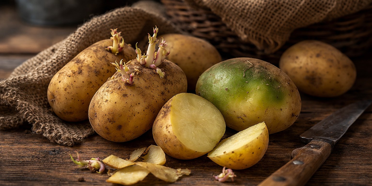 В странах Северного полушария картофель, предназначенный для зимнего хранения, к концу сезона нередко находится в домашних условиях уже несколько месяцев. За это время клубни могут начать прорастать или приобретать зеленоватый оттенок под воздействием света.