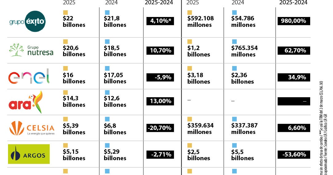 Ambas compañías superaron el umbral de $20 billones vendidos y lograron crecer frente a 2024. La expansión más fuerte la tuvo Mineros (46%) gracias a precio del oro