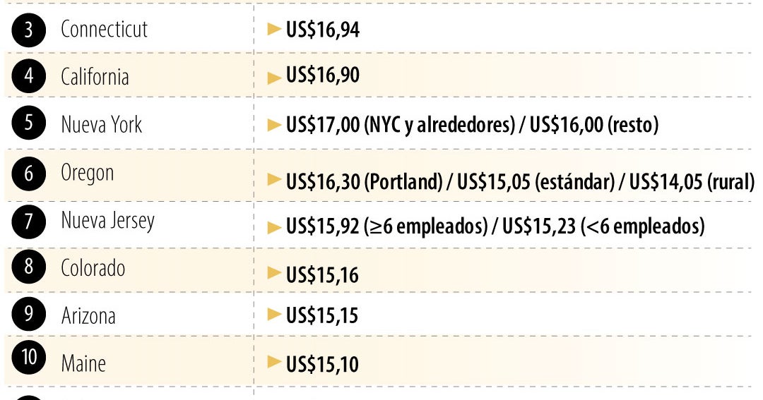El Distrito de Columbia es el estado con el salario mínimo por hora más alto del país, con US$17,95. Este aplica para la mayoría de los trabajadores