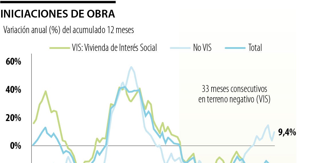 Las iniciaciones en vivienda de interés social registraron una caída de 27,3%, mientras que la de interés prioritario bajaron 27,2%