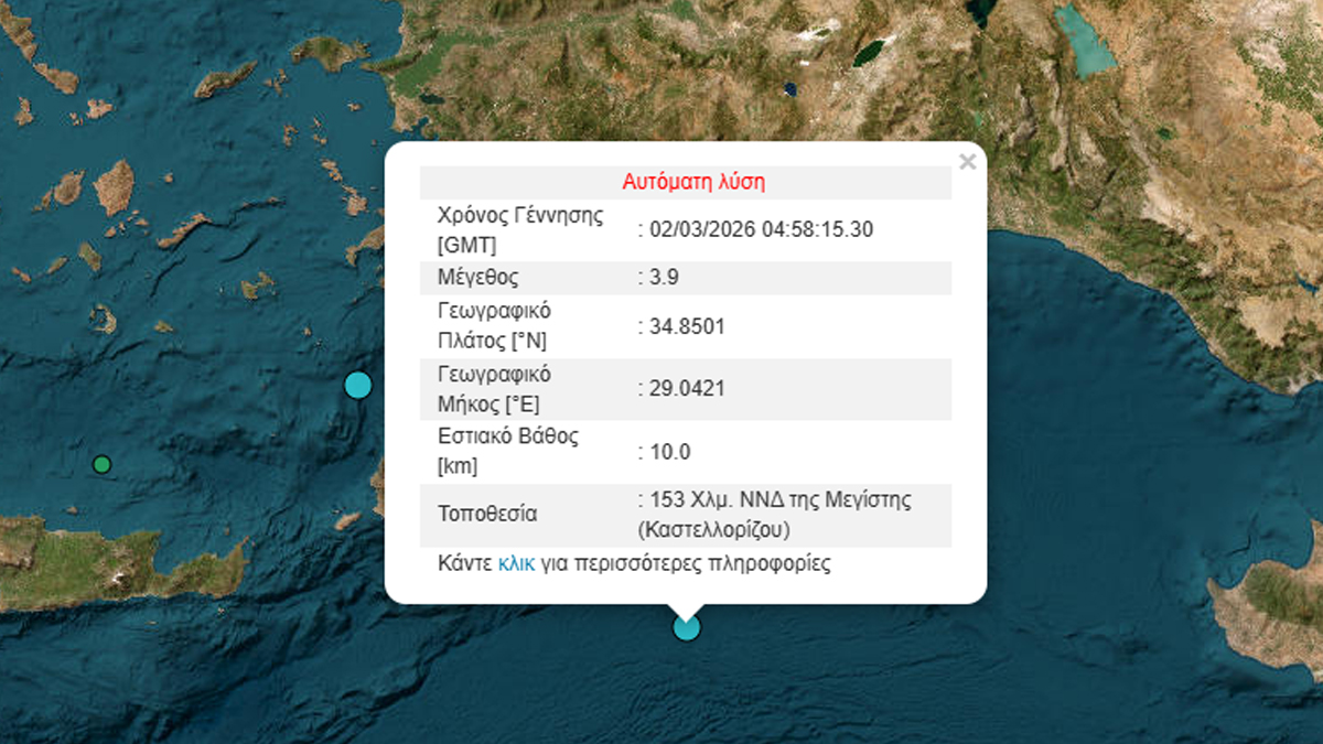 Σεισμός 3,9 Ρίχτερ στα ανοιχτά της Μεγίστης