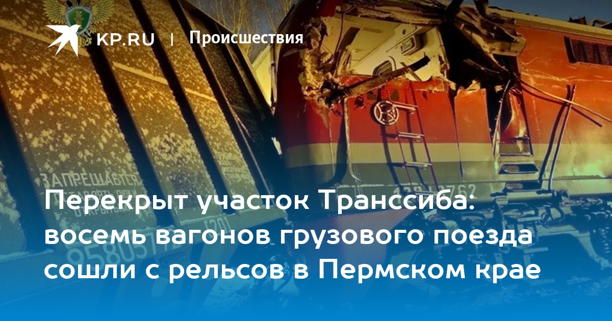 Перекрыт участок Транссиба: восемь вагонов грузового поезда сошли с рельсов в Пермском крае