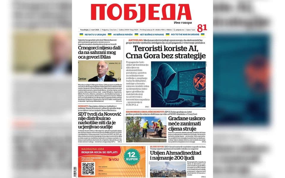 Naslovnica "Pobjede" 2. mart 2026.