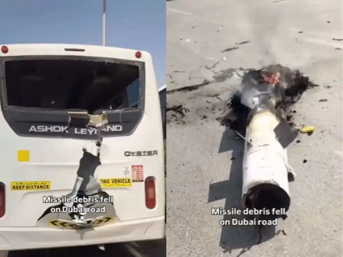 An Indian Ashok Leyland bus in Dubai withstood a direct hit from Iranian missile debris. The vehicle sustained only minor damage, with shattered windows and a dented rear. Videos of the resilient bus are circulating widely online. The incident has generated national pride among Indians and humorous online content.