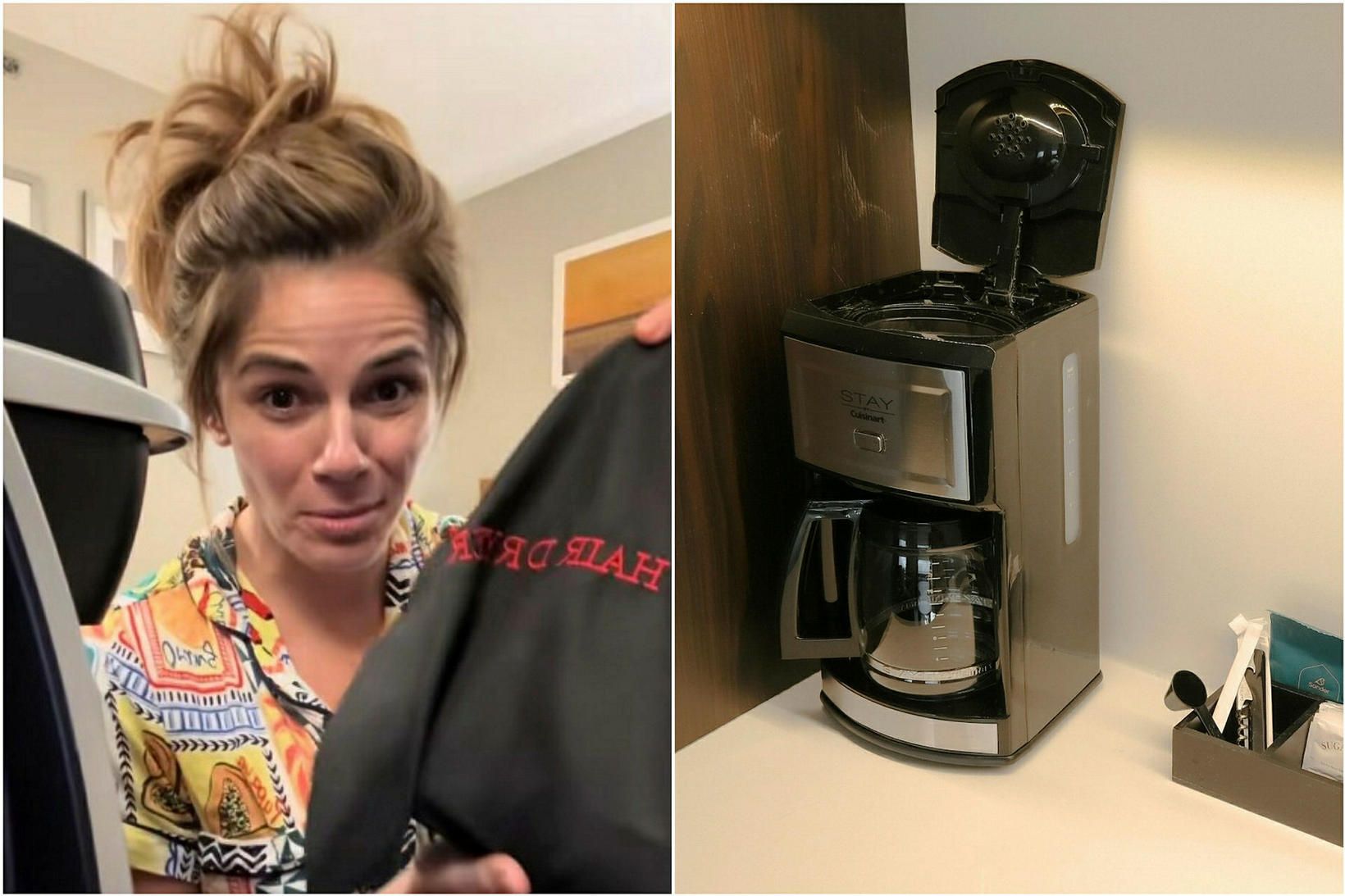 Þrífur skítugar nærbuxur í hótelkaffivélinni