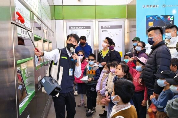 中捷导览人员介绍车站各项设施。(台中市政府提供)