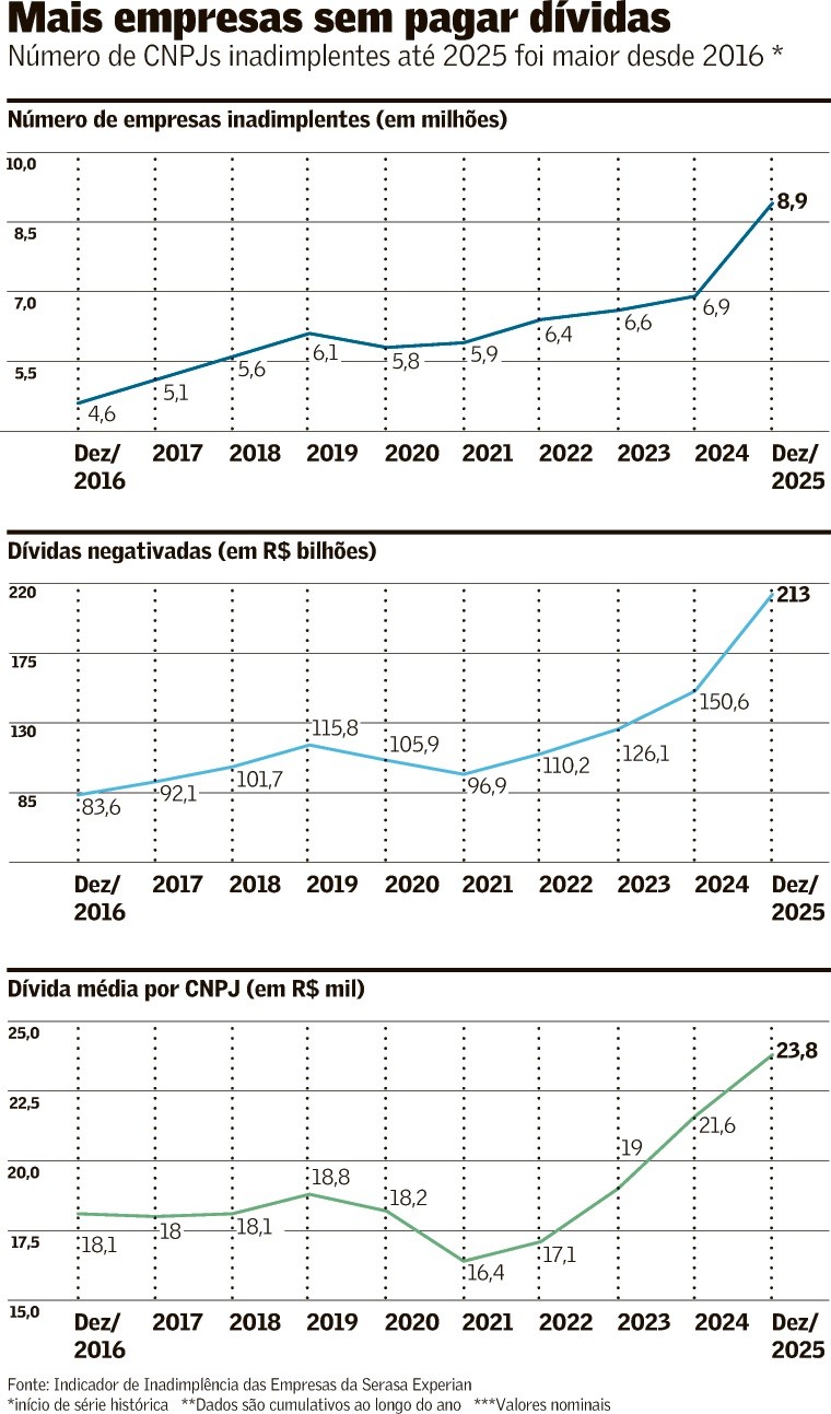 Inadimplência de empresas fecha 2025 em volume recorde