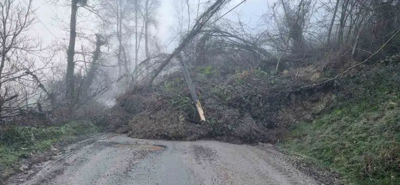 heyelan köy yolunu ulaşıma kapattı