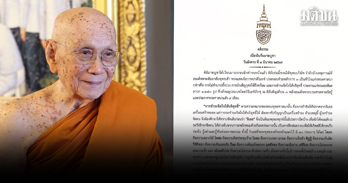 สมเด็จพระสังฆราช ประทานพระคติธรรม เนื่องในวันมาฆบูชา 2569