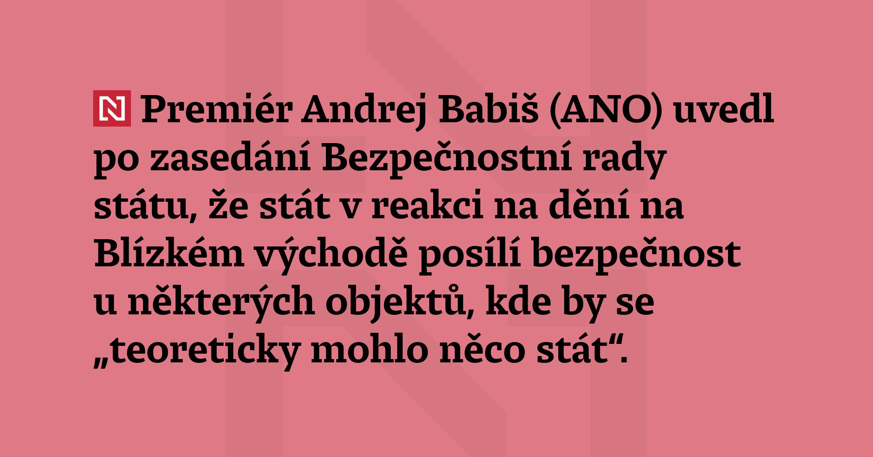 Premiér Andrej Babiš (ANO) uvedl po zasedání Bezpečnostní rady státu, že stát v reakci na dění na Blízkém východě posílí bezpečnost u některých objektů, kde by se „teoreticky mohlo něco stát“. „Ale nejsou informace, že by něco hrozilo. Určitě ale posílíme v našich ulicích a okolo objektů, kde by teoreticky něco hrozilo,“ podotkl premiér s tím, že jde například o posílení […]