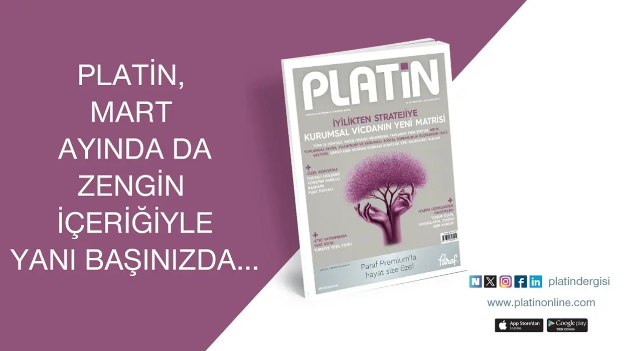Her ay ekonomi ve iş dünyasının nabzını tutan PLATİN, Mart sayısında da sürdürülebilirlikten etki yatırımına, kurumsal dönüşümden ilham veren liderlik hikâyelerine uzanan güçlü dosyalarıyla gündemi yakından takip etmenizi sağlıyor.
