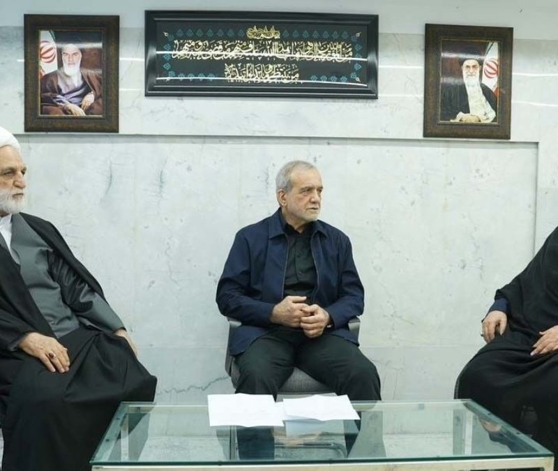 İran'ı yeni dini lider seçilinceye kadar yönetecek olan Cumhurbaşkanı Mesud Pezeşkiyan, Yargı Erki Başkanı Gulam Hüseyin Muhsini Ejei ve Anayasayı Koruyucular Konseyi Ayetullah Ali Rıza Arafi'den oluşan Geçici Liderlik Konseyi toplandı.
